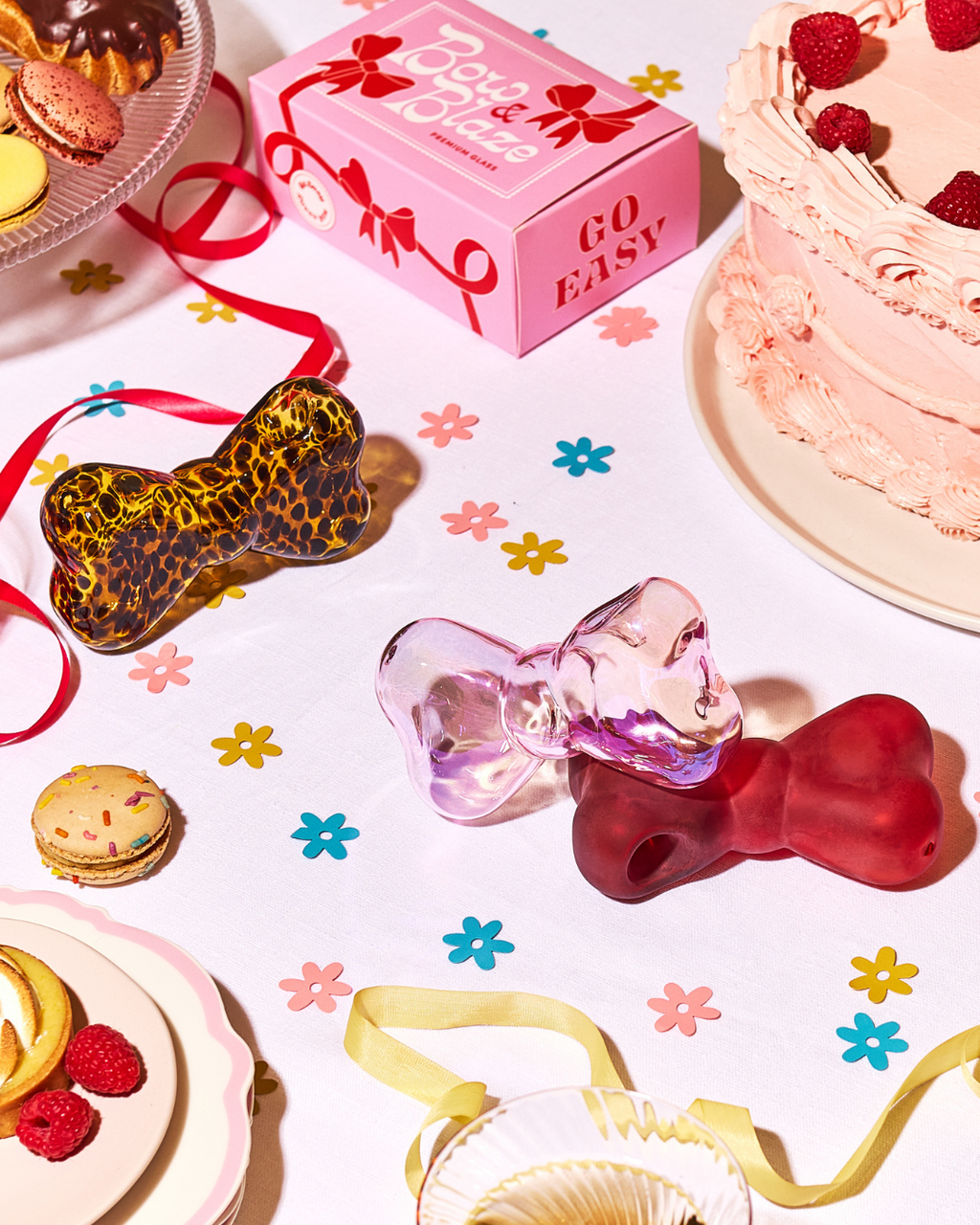 GoEasyShop's newest piece is made for the GIRLS! Keep it coquette with their newest glass piece, Bow & Blaze. Made with premium glass, each bow shaped pipe is easy to hold and use. Bow & Blaze comes in three colorways: Blush (an iridescent pink) Leopard (tortoise) and Ruby (matte red). Each bow comes individually packaged in a safe foam insert and their signature branded boxes.